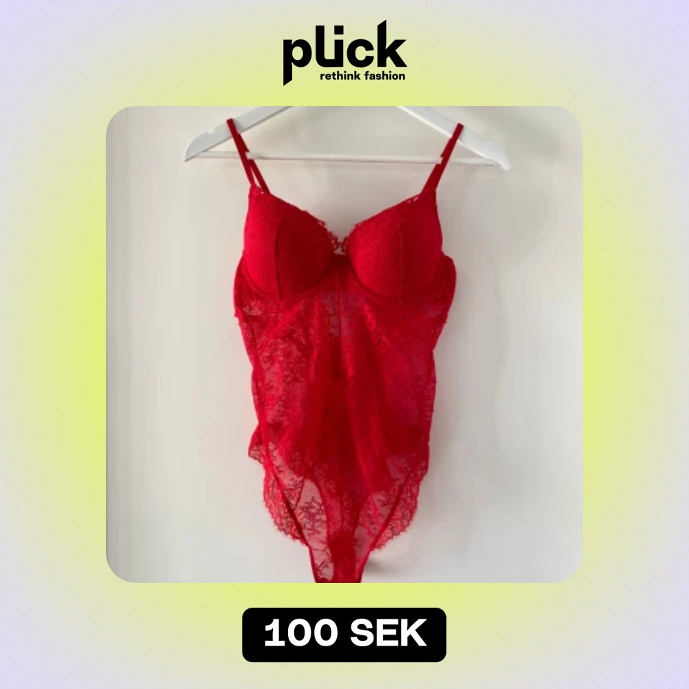 Röd body i spets med pushup-bh från H&M. Den har fina och väl gjorda spetsdetaljer. Endast använd en gång.