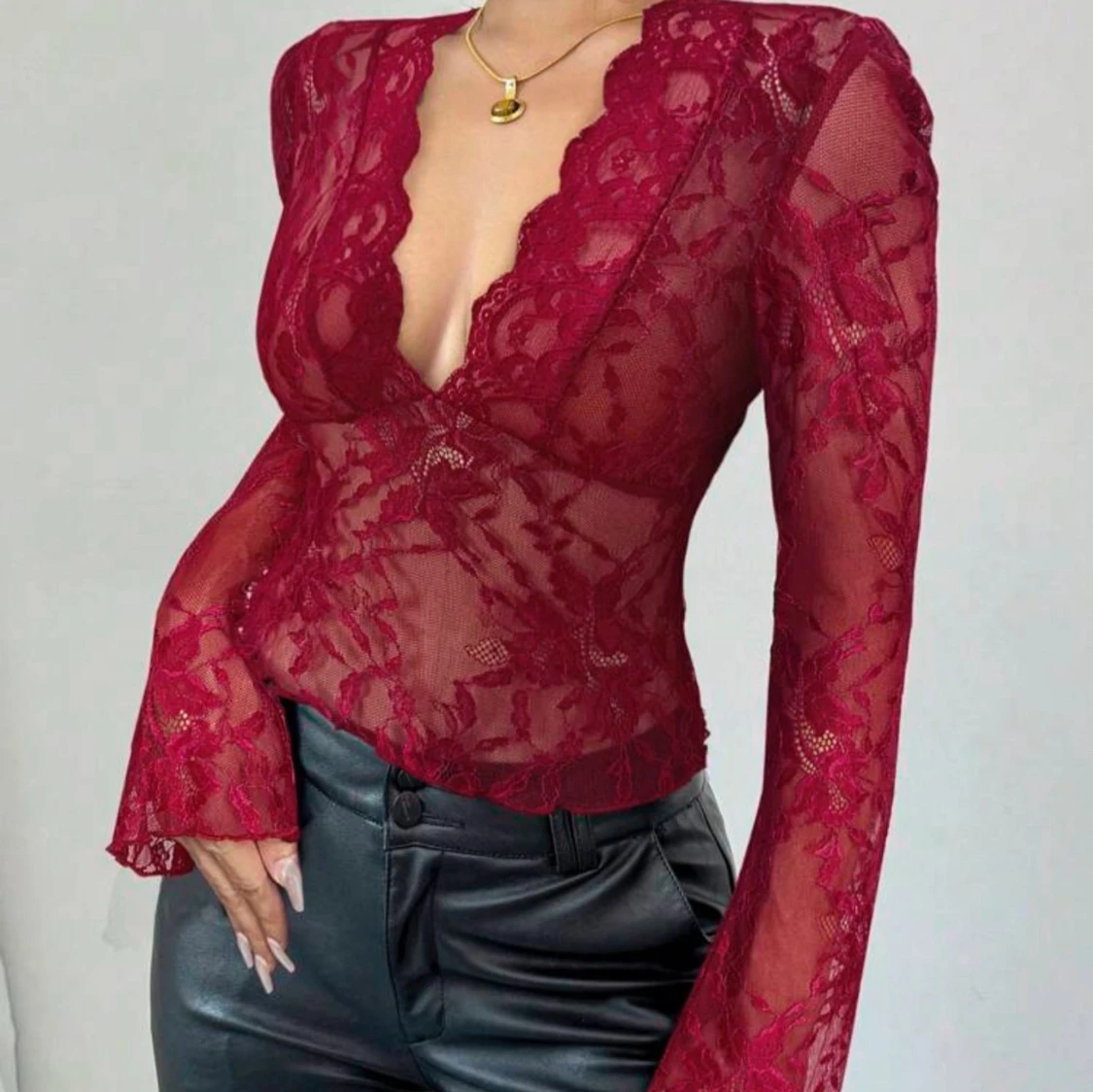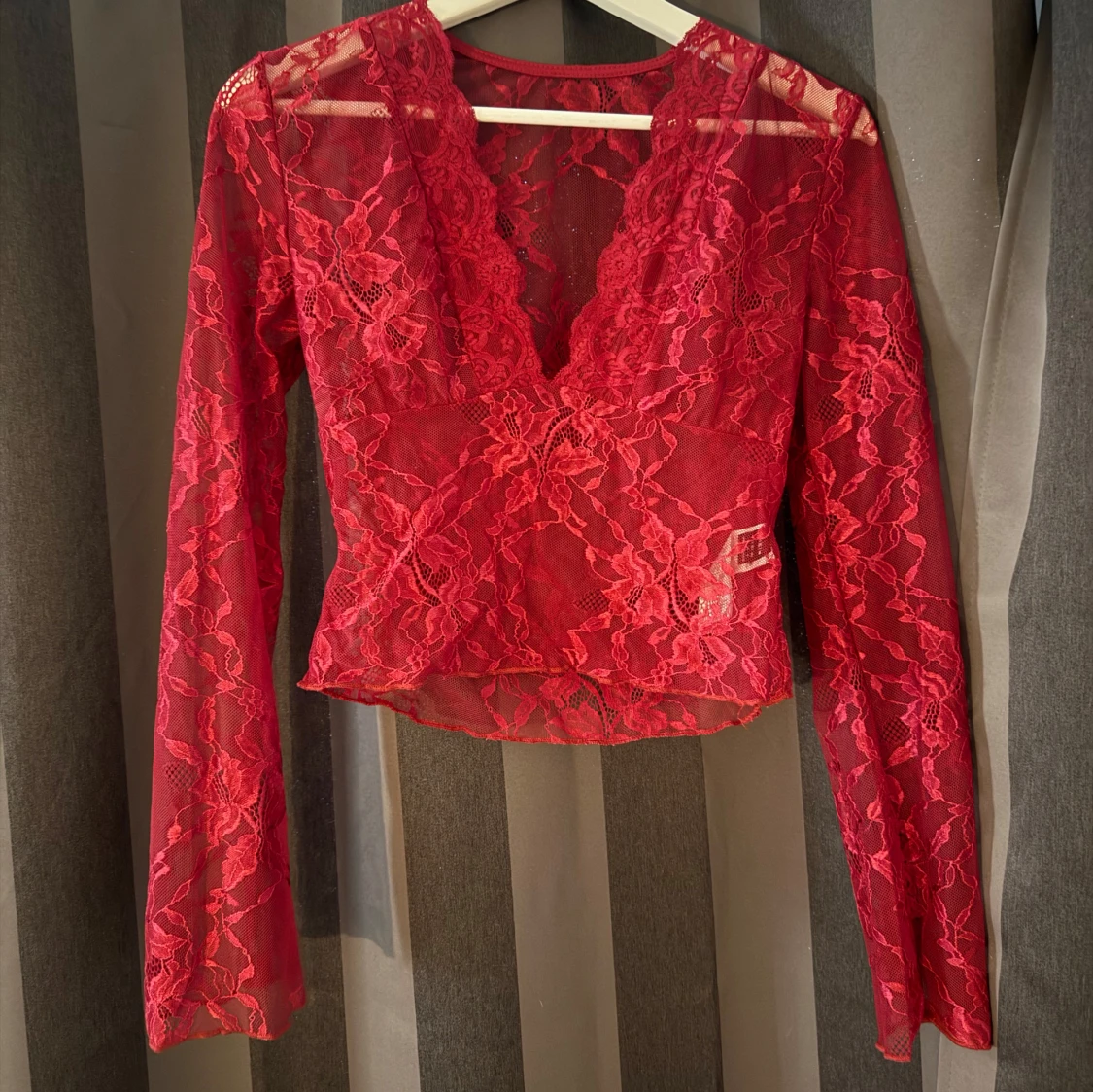 Säljer den här jättefina röda spets toppen från shein. Aldrig använd, säljer den då den var för liten för mig. Storlek S. Sitter precis som på bilden.❤️Har även en likadan i mörkblå, så skriv om ni skulle vilja se bild på den med.