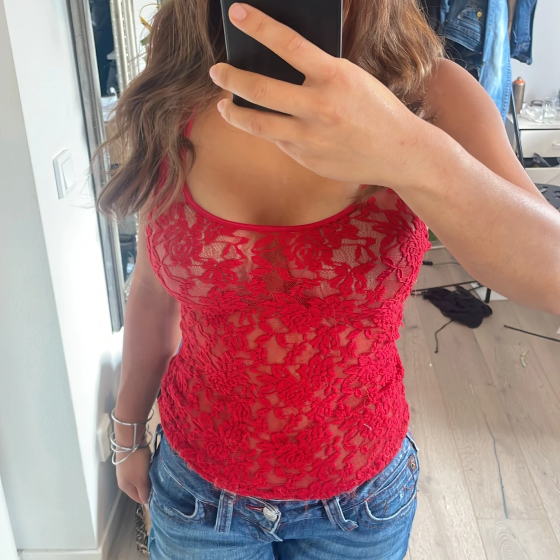 Rött spetslinne från GUESS i storlek s