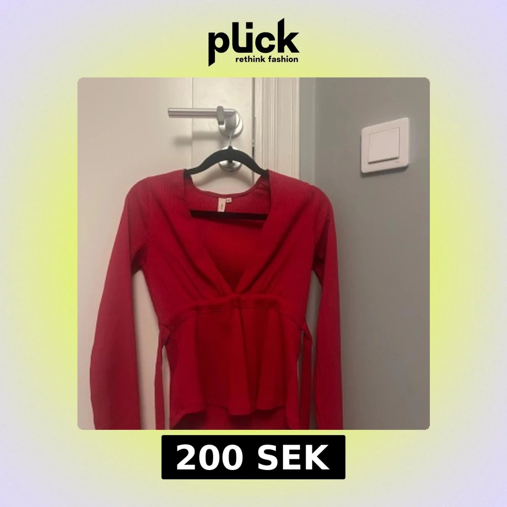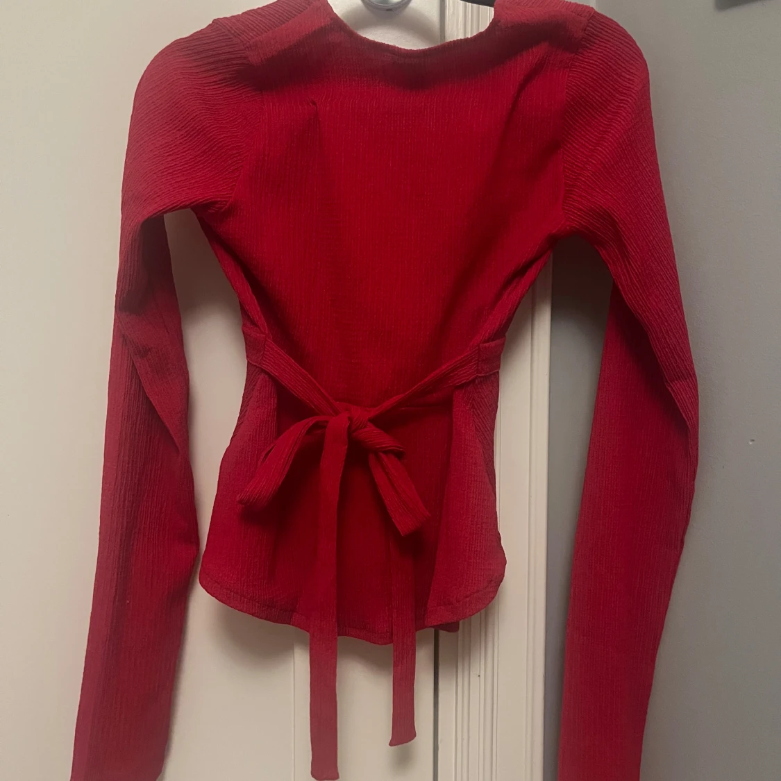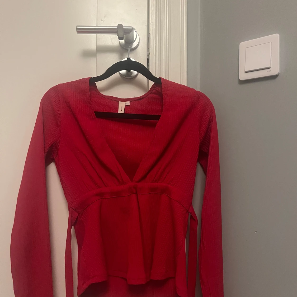 Säljer en röd knyt Top från Nelly i storlek XS. Toppen har långa ärmar, v-ringning och knytband i midjan som ger en snygg siluett. Materialet är ribbat och stretchigt. Använd två gånger så knappt använda. Men inget fel på den ser ut som helt ny! Helt slutsåld på Nelly!