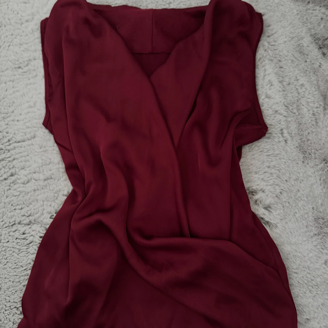 Snygg vinröd topp i omlottstil. Den har en elegant drapering framtill. Perfekt för en stilren look. Helt ny aldrig använd
