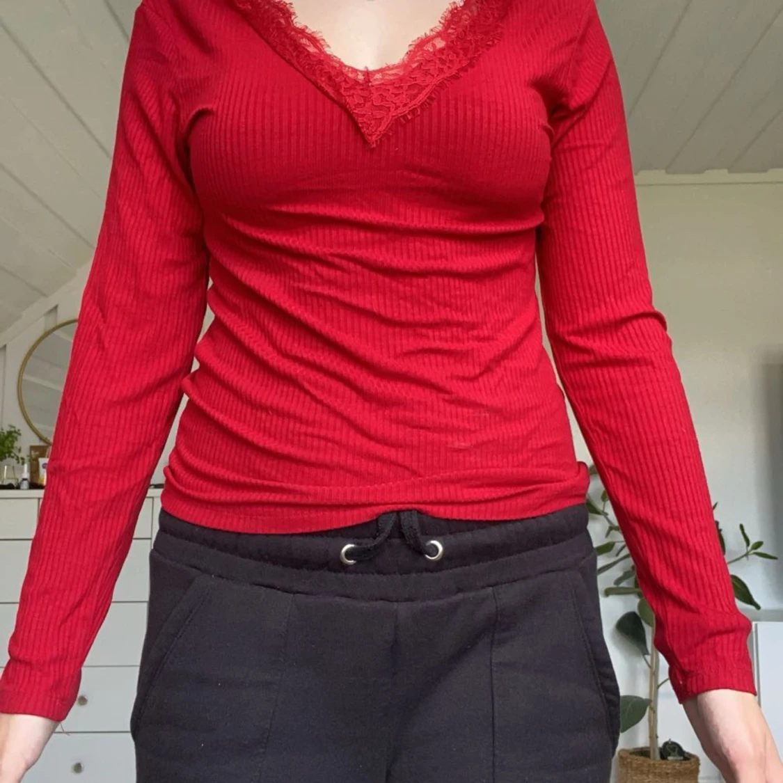 Super snygg röd tröja som är uppen i ryggen, alltså den är lika uppen fram som bak. Den är i storlek L men folk mellan S-L kan ha den här. Säljer då jag inte använder den längre
