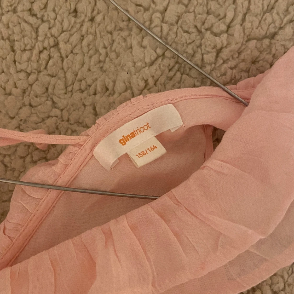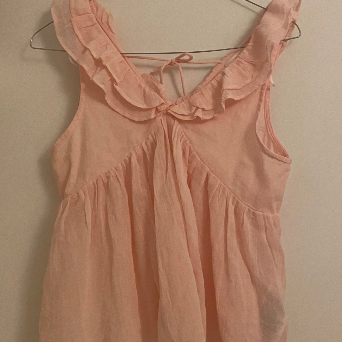 Söt rosa ärmlös topp från Gina Tricot med volangdetaljer runt halsen och knytning i nacken. Perfekt för sommaren ! Aldrig användt 💗