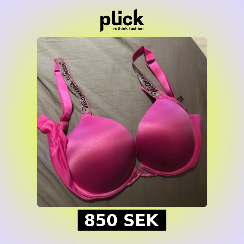 Snygg rosa bh från Victoria's Secret med glittriga axelband. Perfekt för att lägga till lite glamour i vardagen. Helt oanvänd bh som är köpt i USA som tyvär inte kommer till användning längre så hör av er vid frågor! Denns typen sv bh från victoria secret är små i stolekarna så om du har 75B - 75C skulle denna va perfekt