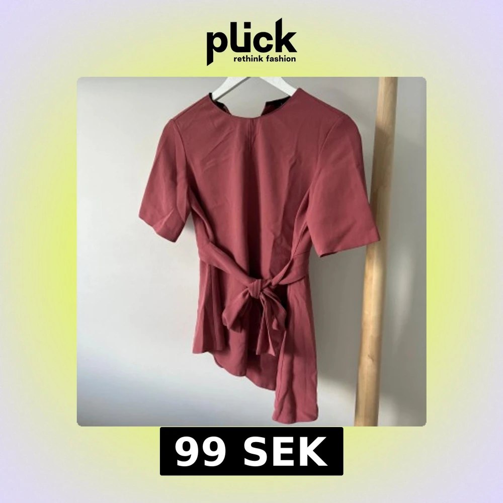 Supersnygg rosa blus från Zara Woman med korta ärmar och knyt i midjan som ger en fin siluett. Blusen har en liten v-ringning framtill och är lätt utsvängd nertill.