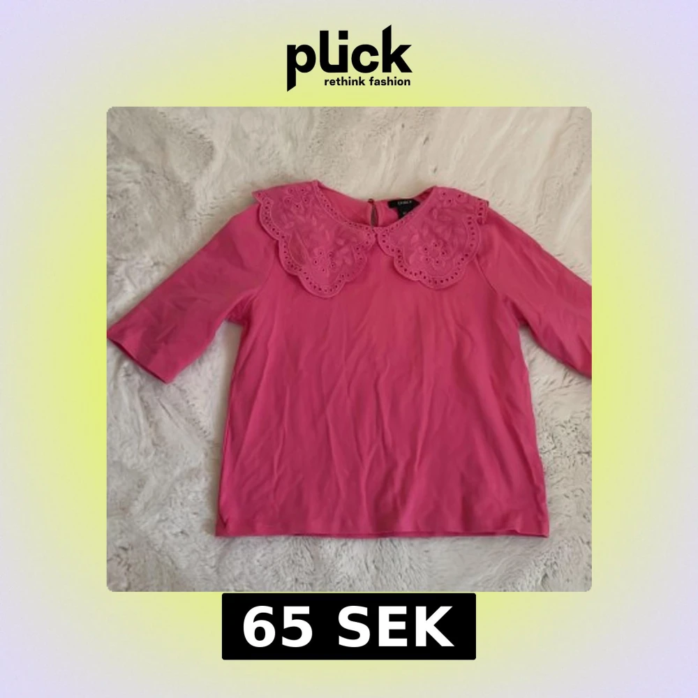 Supersöt rosa blus från Lindex med stor, broderad krage och blommiga detaljer. Blusen har halvlånga ärmar och en rund halsringning. Perfekt för dig som vill ha något unikt och färgglatt i garderoben!