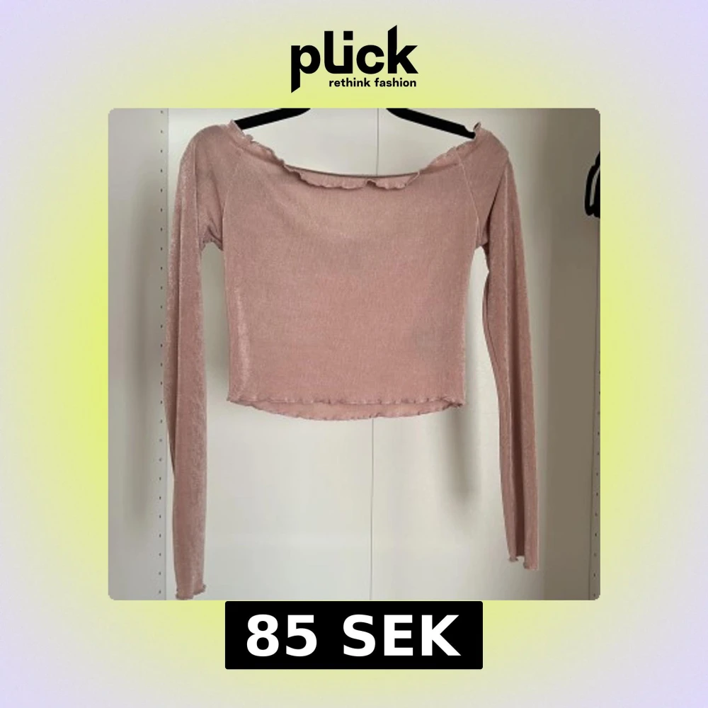 Säljer en ljusrosa croppad topp med offshoulder och långa ärmar. Perfekt för dig som gillar trendiga.