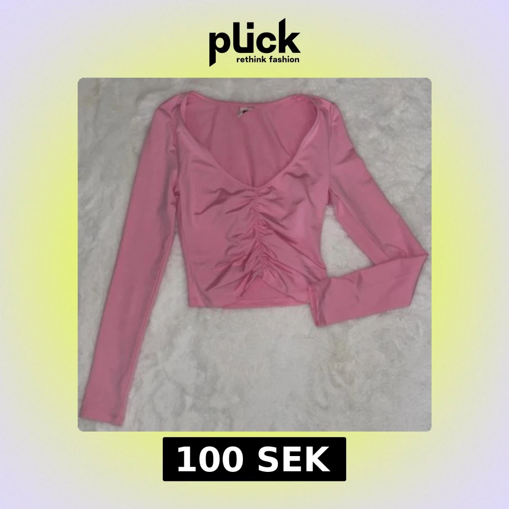 Säljer en söt rosa långärmad topp med croppad passform och snygg rynkdetalj framtill. Toppen har djup v-ringning och är tillverkad i ett mjukt, stretchigt material som sitter skönt på kroppen. Perfekt att styla med jeans eller kjol för en trendig look.