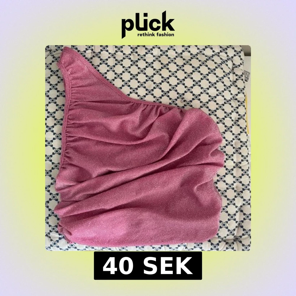 Säljer en rosa glittrig topp med one shoulder-design och volangdetalj vid axeln. Perfekt för dig som vill sticka ut med en trendig och snygg look. Toppen har en snygg drapering och är riktigt bekväm.