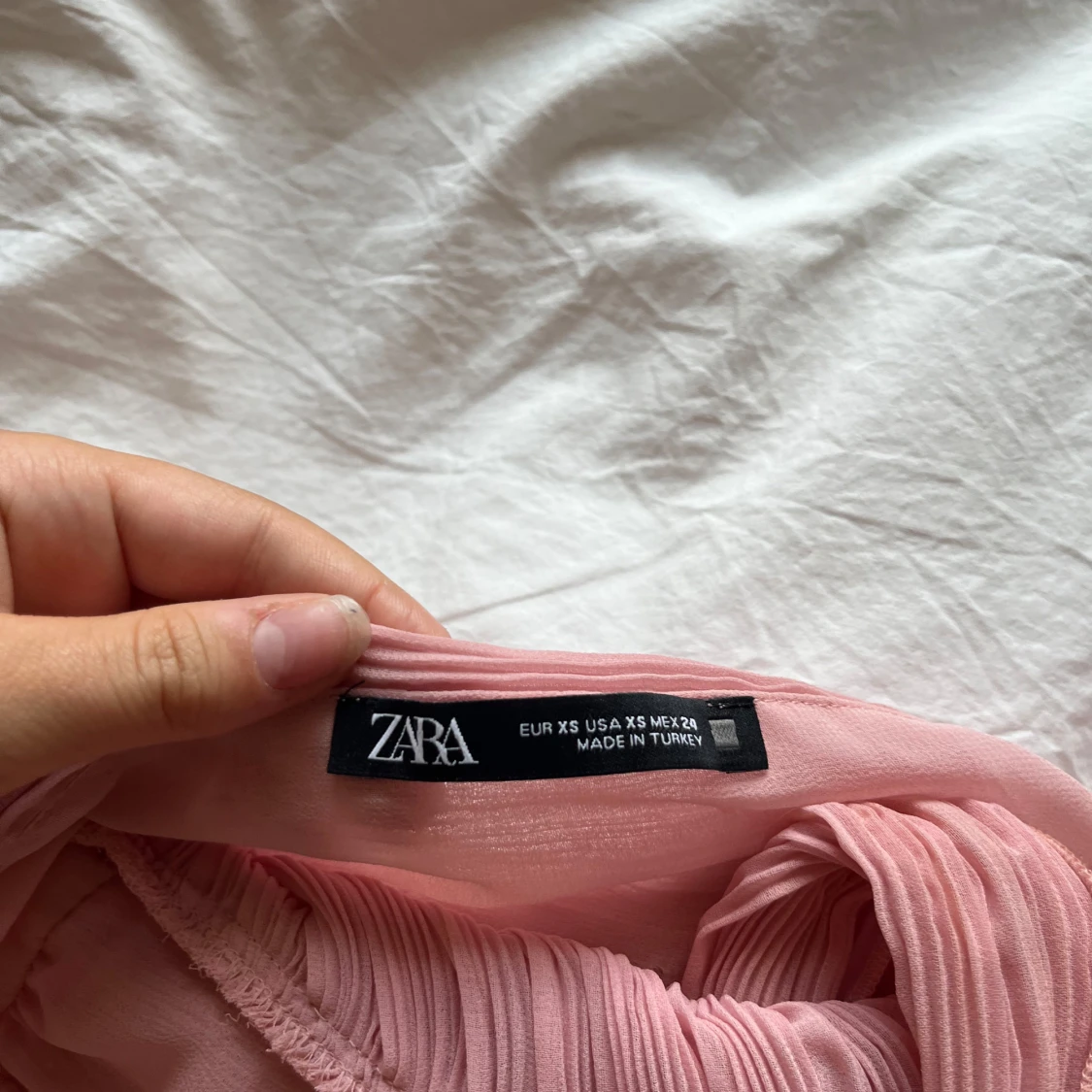 Supersöt eftertraktad ljusrosa halterneck topp från Zara. Toppen har en knutdetalj framtill och är tillverkad i ett lätt, flowy material som ger en luftig känsla. Perfekt för sommardagar och när du vill känna dig extra fin. Använd endast 1 gång💓