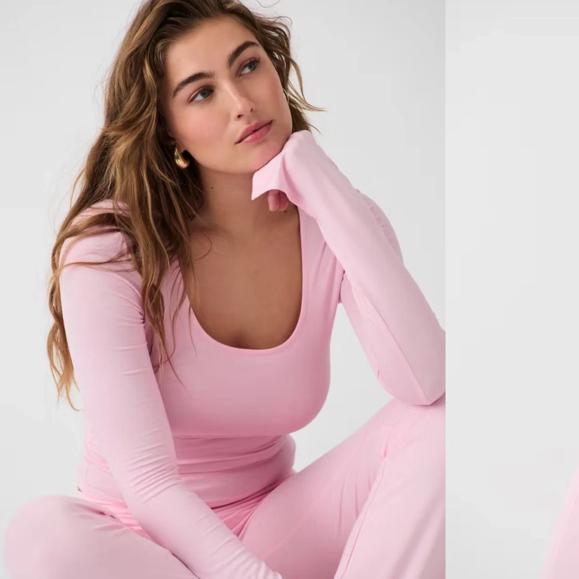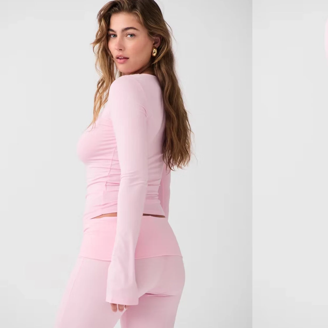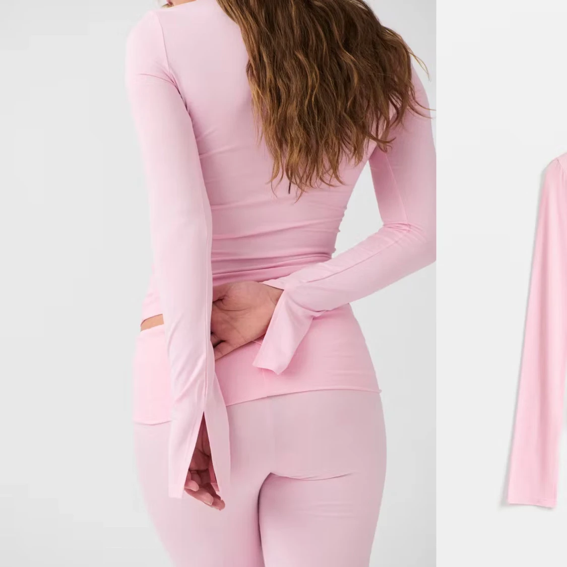 Säljer en söt rosa långärmad topp med rund halsringning. Toppen är figurnära och perfekt för en stilren look. Den är tillverkad i ett mjukt och stretchigt material som ger en bekväm passform.