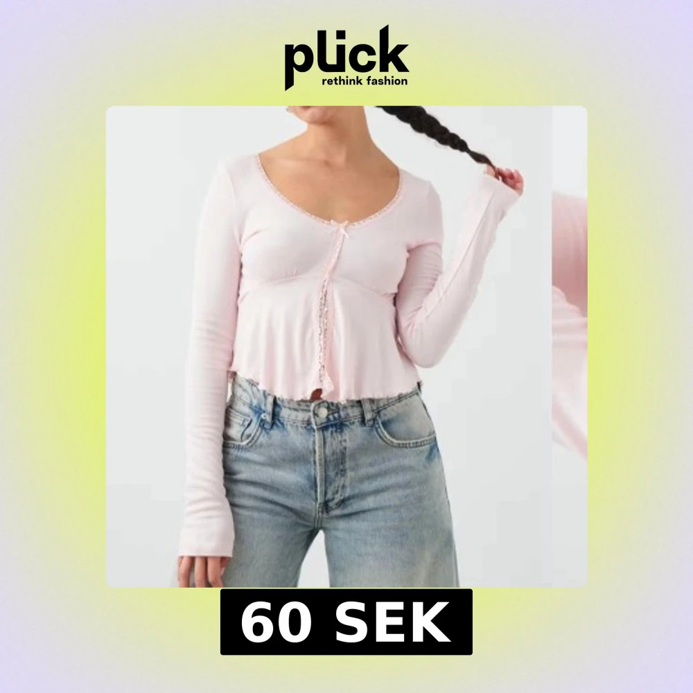 Söt rosa långärmad topp från Gina Tricot med spetsdetaljer och en liten rosett framtill. Toppen har en croppad passform och rund halsringning. Perfekt för en gullig sommarlook. Använd 1 gång. Strl S💞