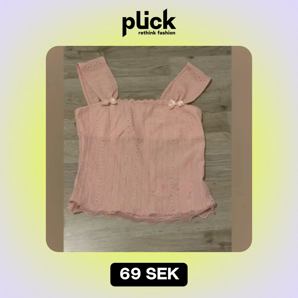 En ljus rosa linne med 2 rosetter på , Det står ingen storlek på men skulle personligen säga att den är i storlek XS. Aldrig använd (den var mindre än vad jag trodde)