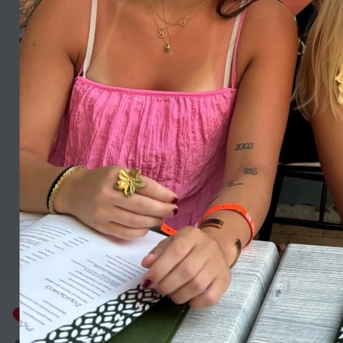 Säljer en söt rosa linnetopp med tunna axelband och rynkad struktur. Knappt använd!