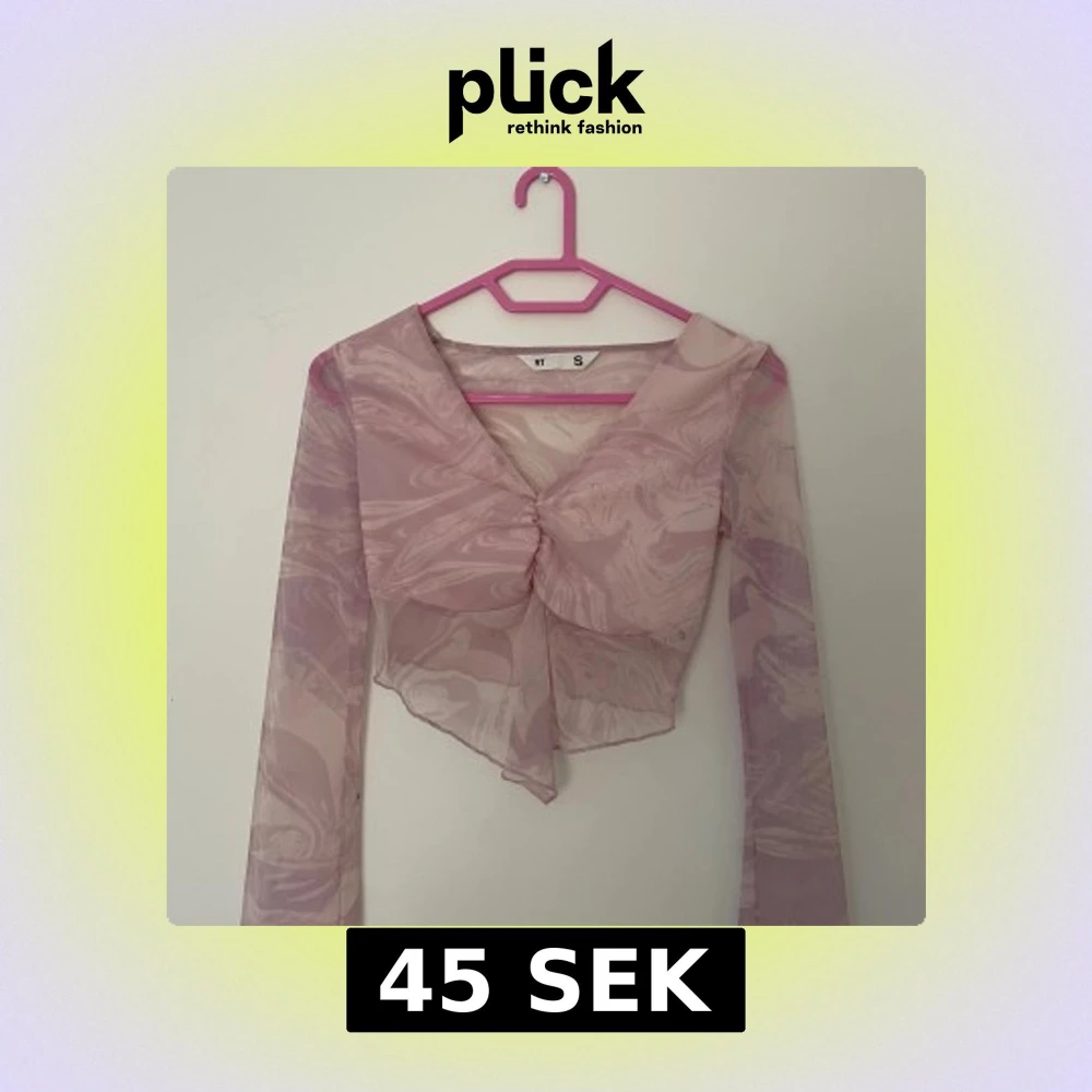 Säljer en transparent rosa meshblus från KT i storlek S. Blusen har ett unikt marmorliknande mönster, v-ringning och rynkad detalj framtill. Långa ärmar och asymmetrisk nederkant ger en cool och trendig look. Perfekt för dig som gillar statement-plagg!