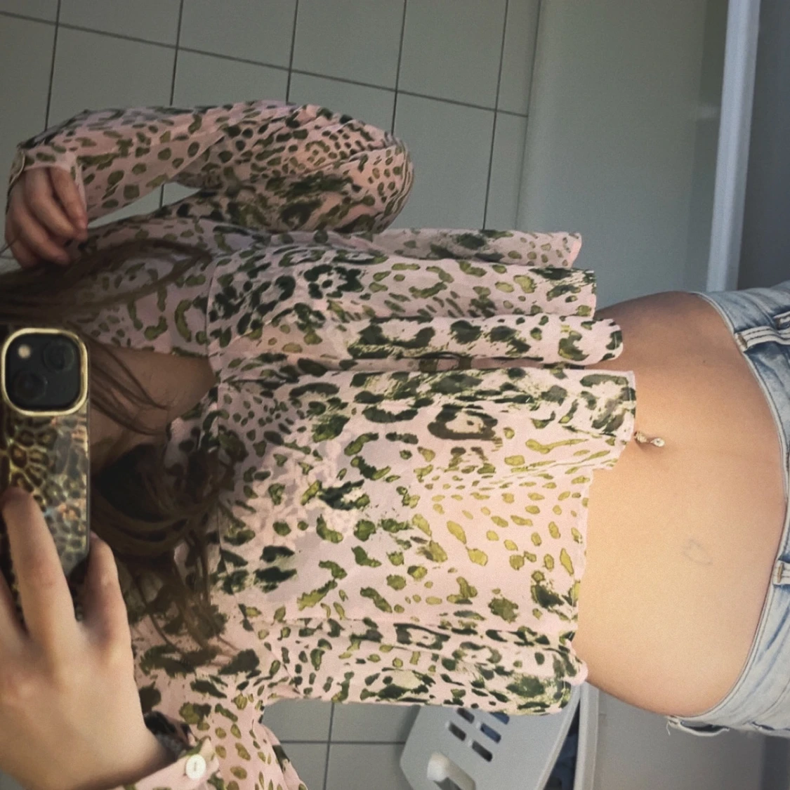 Trendig rosa blus med mönster och volangdetaljer. Långa ärmar och v-ringning. Luftigt och tunt material perfekt till varma sommardagar! Inga defekter 💕