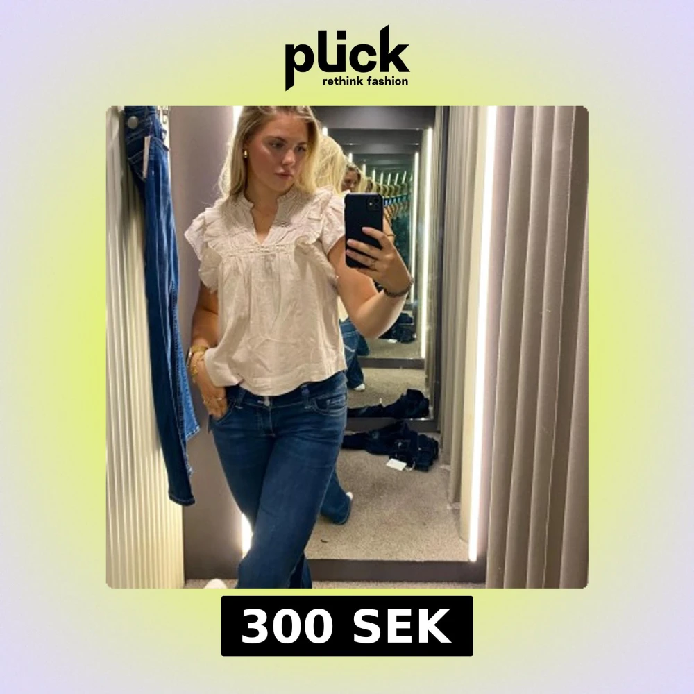Säljer en söt beige blus med volangdetaljer ish. Köpt på Nelly men är från märket Neo Noir. Nypris 699kr