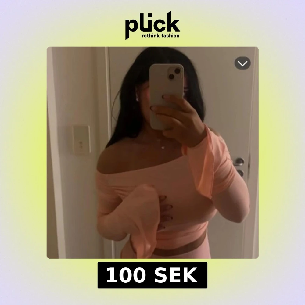 Snygg rosa offshoulder topp med långa ärmar och croppad design. Strl M. Använd en gång