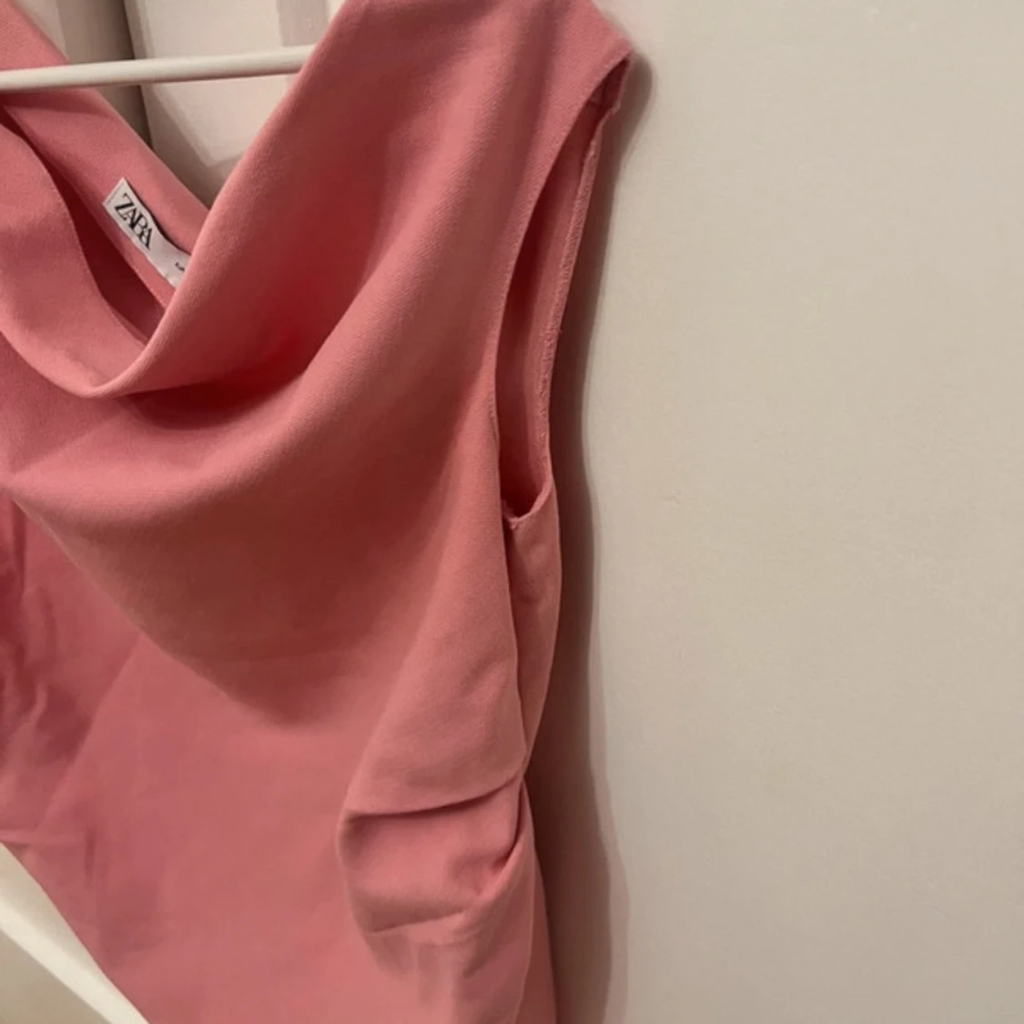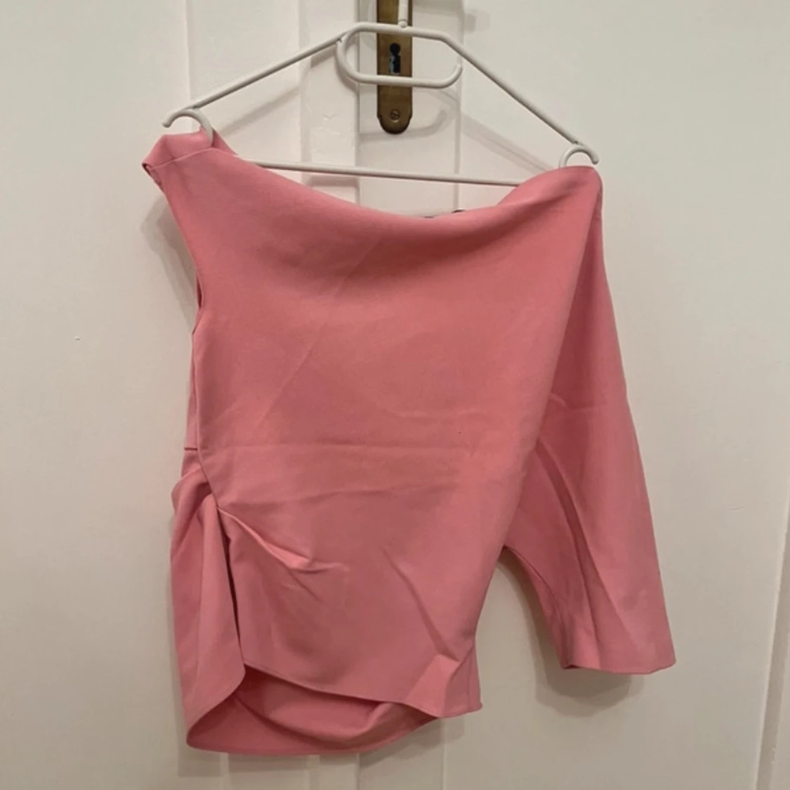 Trendig rosa topp från Zara med oneshoulder-design. Toppen har en asymmetrisk skärning och är tillverkad i ett mjukt, slätt material. Perfekt för dig som vill sticka ut med en unik och stilren look.