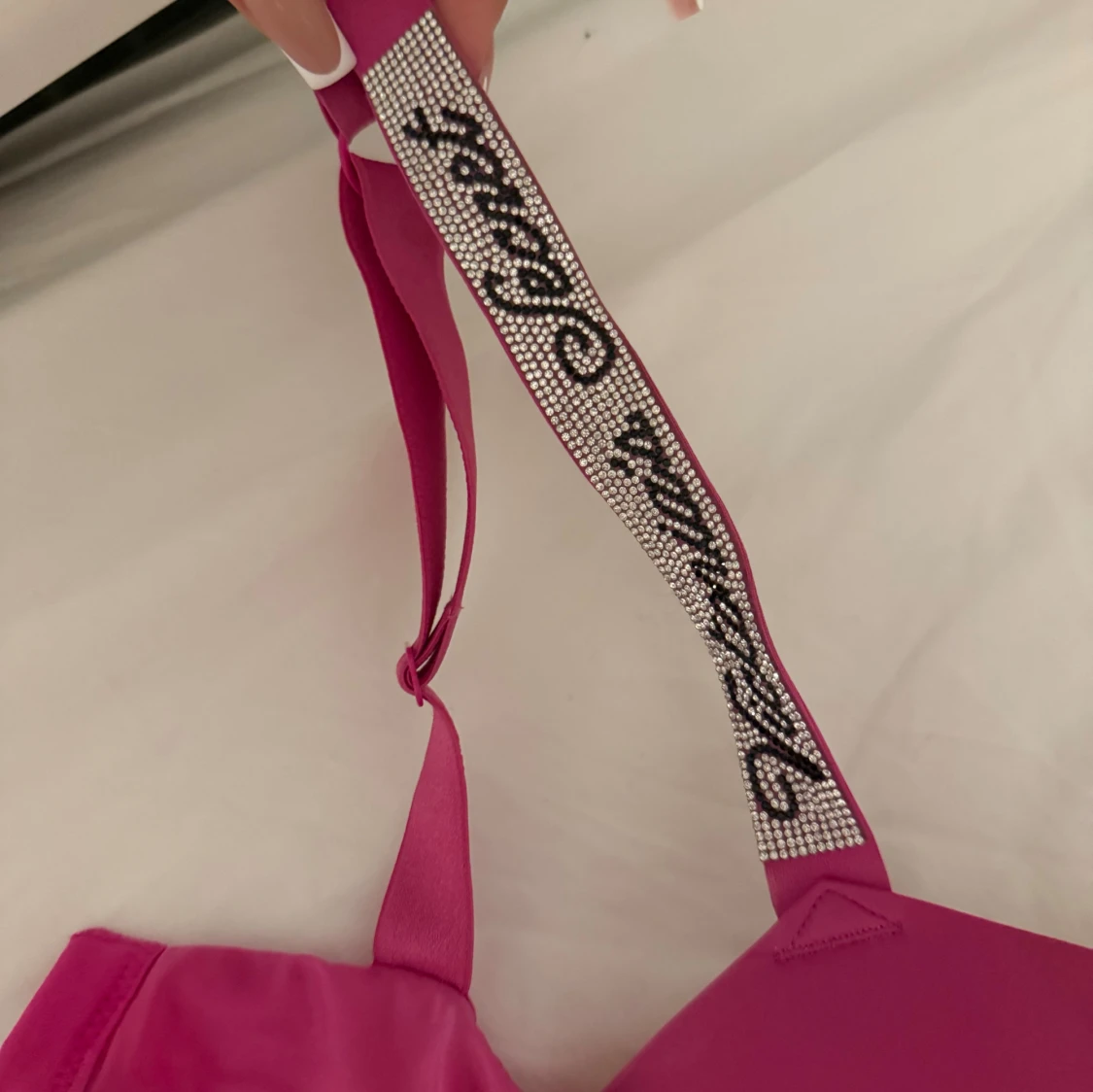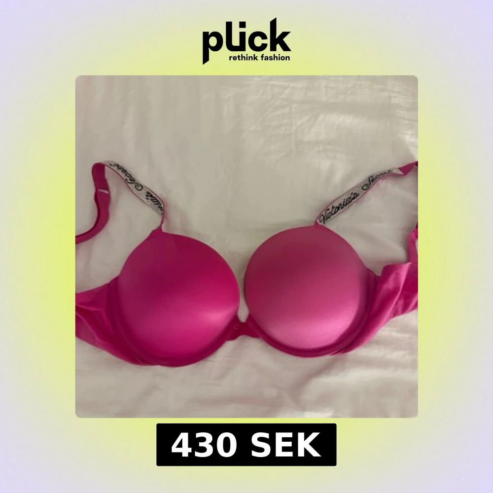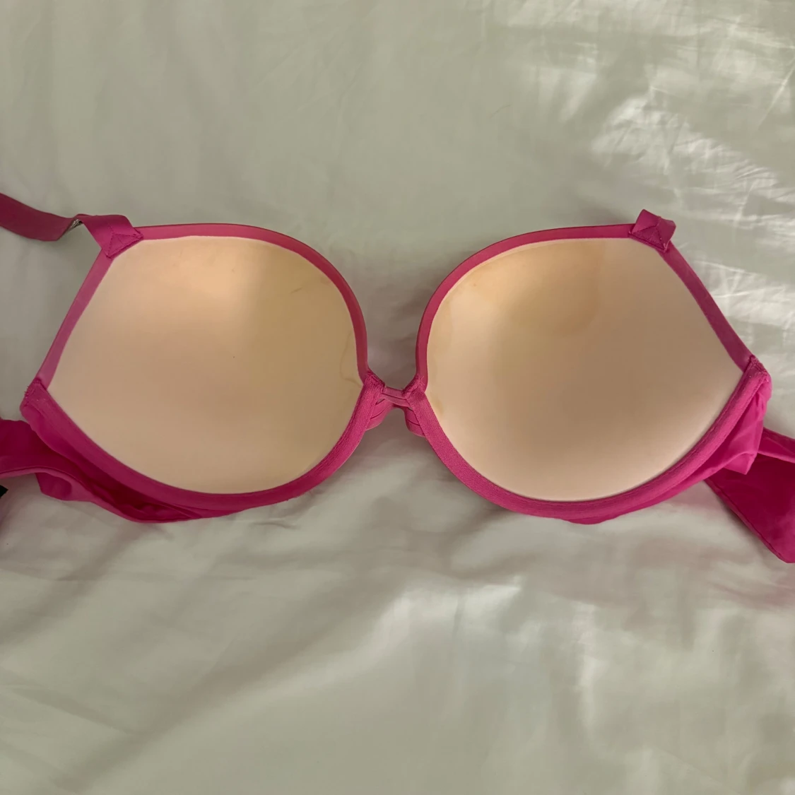 Säljer en snygg rosa push-up bh från Victoria's Secret i storlek 34DD. Använd ett fåtal gånger.