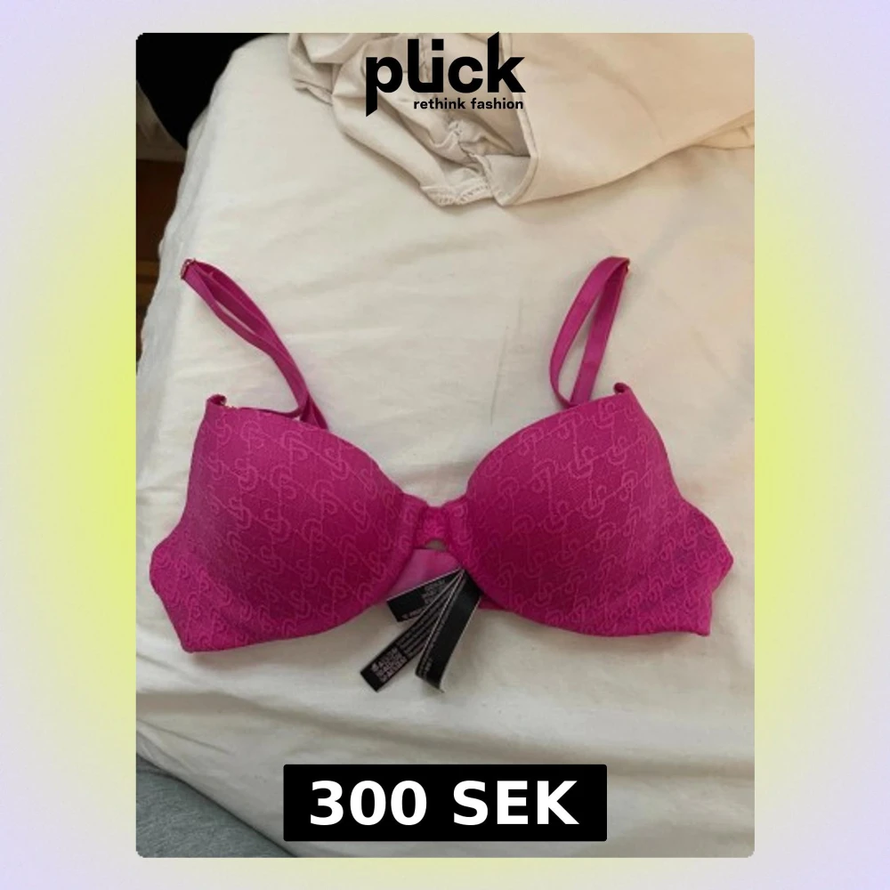 Säljer en snygg rosa push-up bh från Victoria's Secret, modell Very Sexy demi. Bh:n har tunna axelband, vadderade kupor och ett diskret mönster med VS-loggor över hela tyget. Perfekt för dig som vill ha en feminin och trendig look.