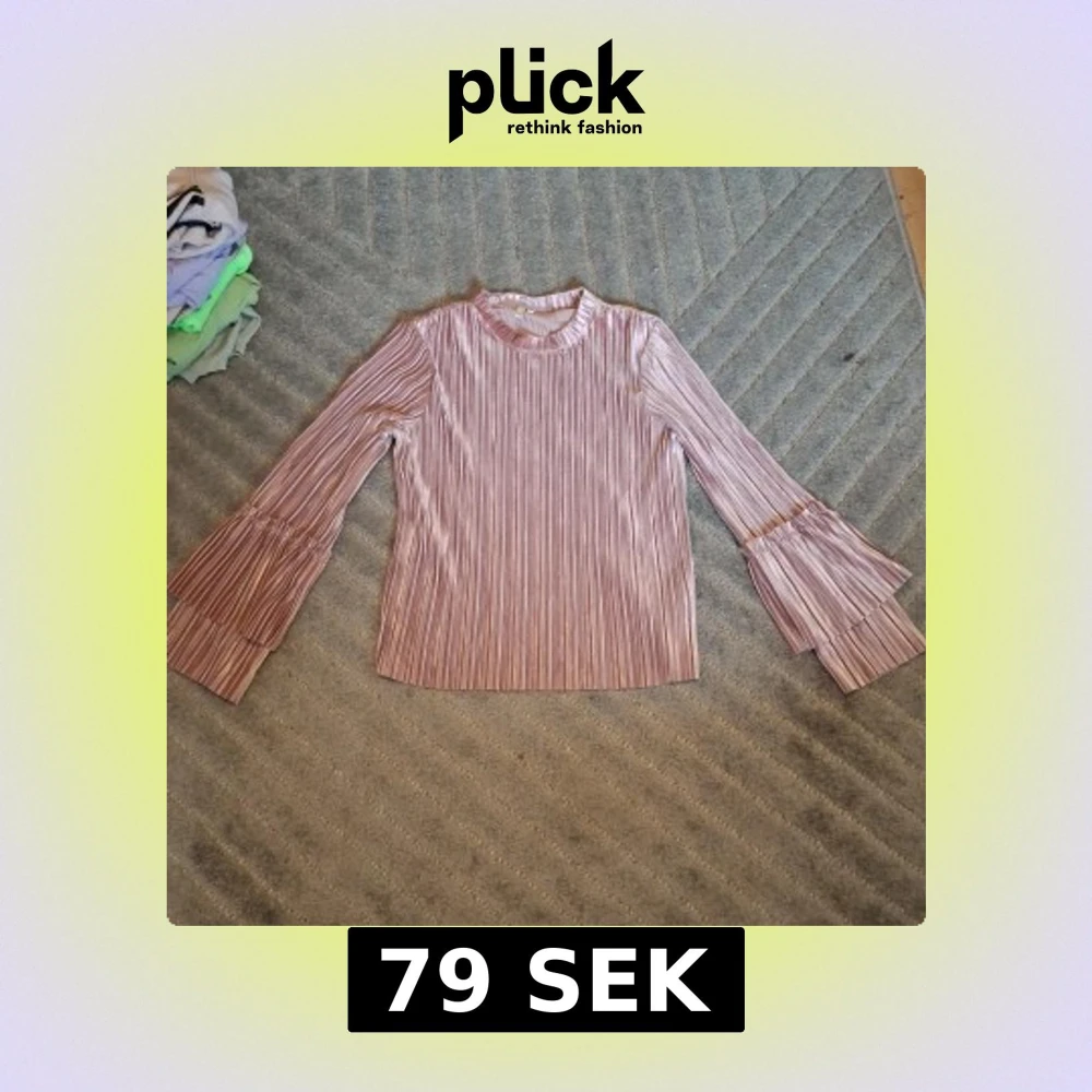 Säljer en glansig rosa blus från NLY Trend i storlek 34. Blusen har ett randigt mönster, långärmade ärmar med volangdetaljer och en rund halsringning. Materialet är mjukt och skimrande, vilket ger en lyxig känsla. Perfekt för dig som gillar statement-ärmar!