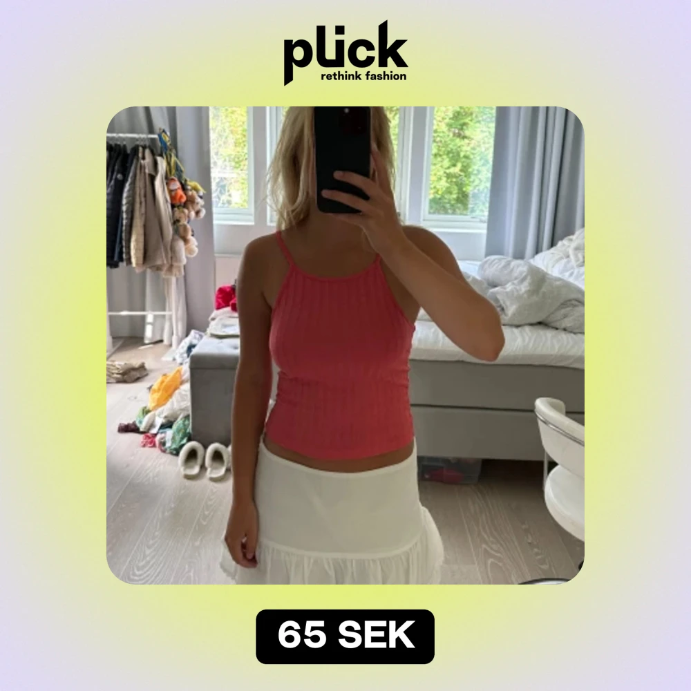 Säljer en superfin rosa ribbad linnetopp. Den är ärmlös med smala axelband och har en tight passform. Märket är bikbok och storleken är XS. den är stretchig