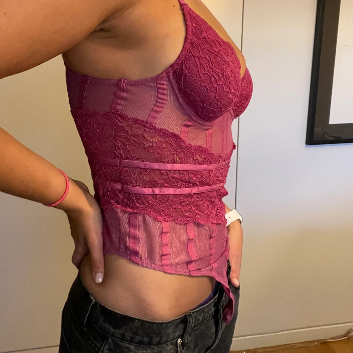 En rosa body korsett med bygel! Använd 1 gång bara! I stl 10, Small/Medium i storlek! Original pris 399