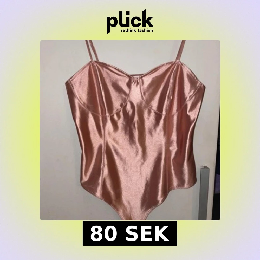 Elegant rosa korsett i glansigt satinmaterial med smala axelband. Perfekt för en stilren och chic look.