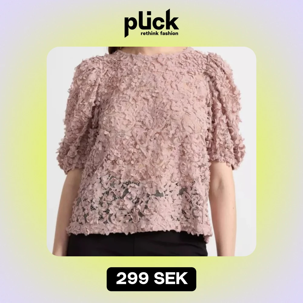 Rosa spetsblus med korta puffärmar. SLUTSÅLD PÅ HEMSIDA, ALLA STORLEKAR! Nypris:399 Mitt pris: 299 ANVÄND 1 ggr