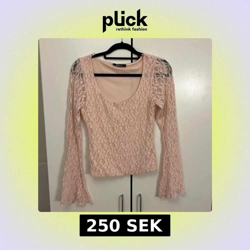 Supersöt ljusrosa blus i spets från Gina Tricot med långärmade utsvängda ärmar och rundad urringning. Helt ny utan prislapp!