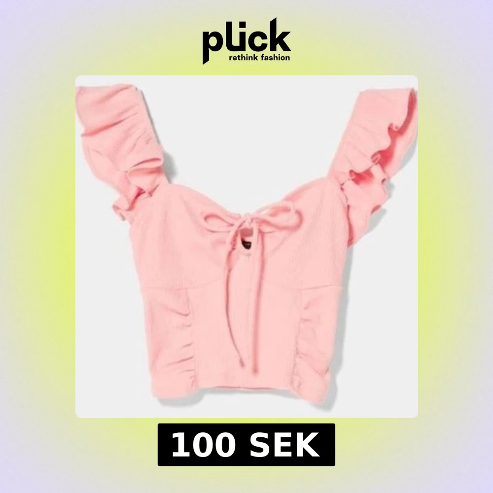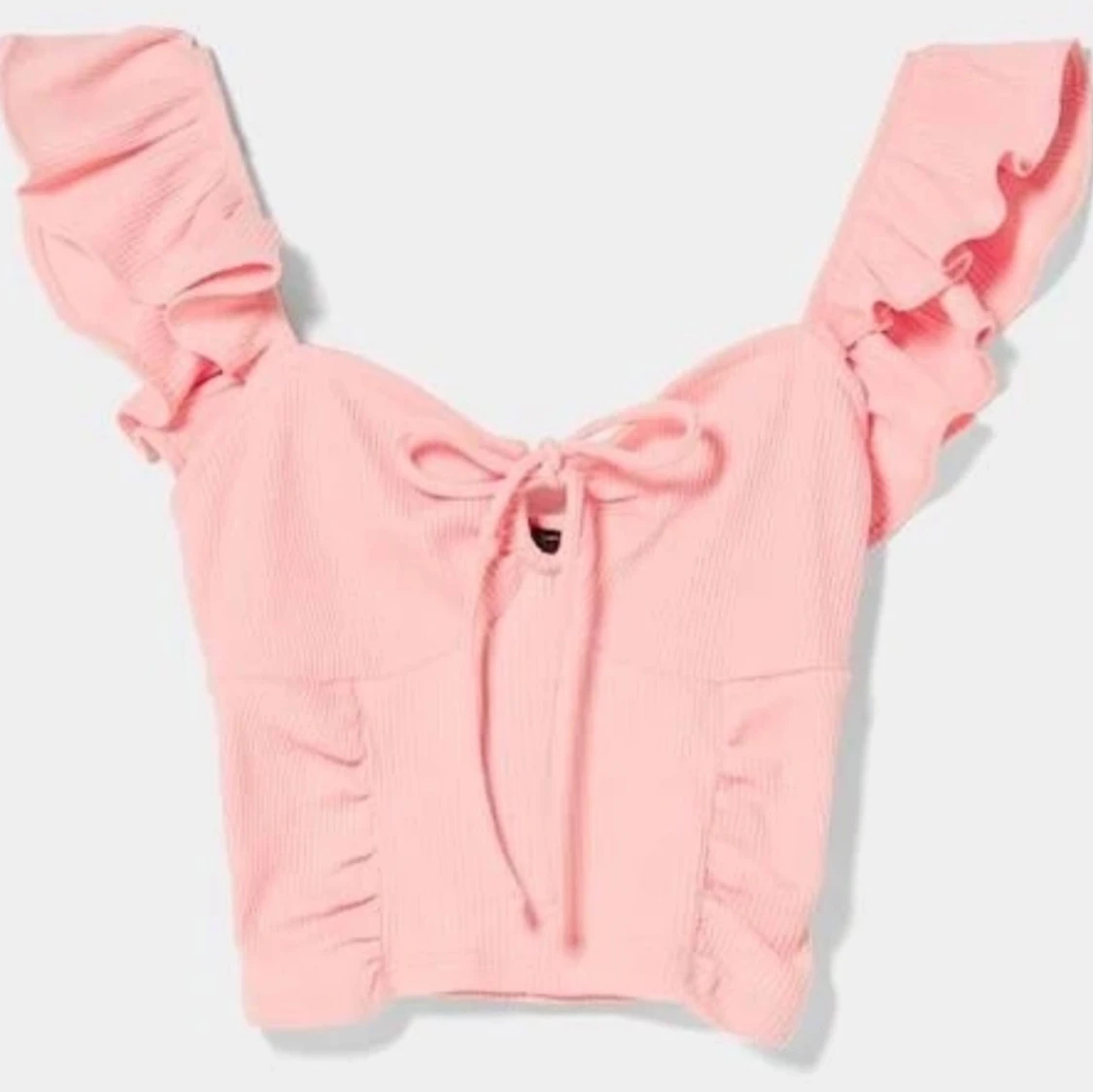 Supersöt ljusrosa croppad topp med volangärmar och knytning framtill. Från bershka