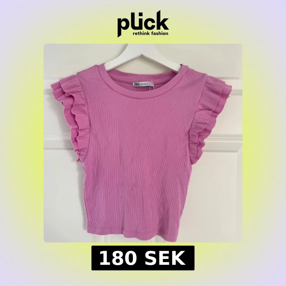 Supersöt rosa ribbad topp från Zara med volangdetaljer på axlarna❤️Den är tyvärr inte min stil längre så därför säljer jag den men absolut inget fel på den.