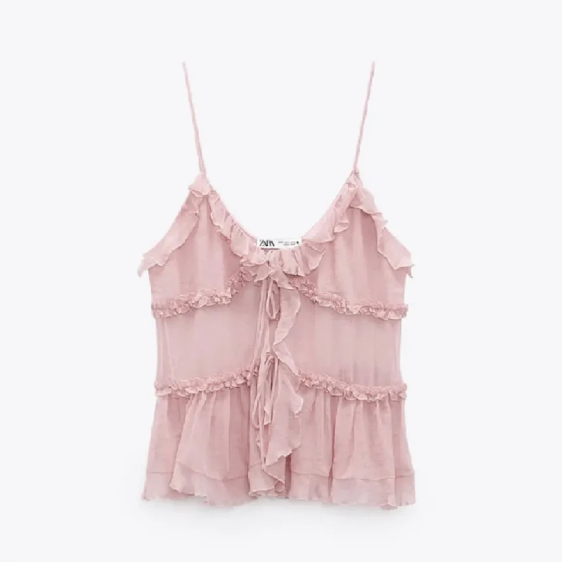 säljer min rosa volangtopp från zara eft den är för stor på mig, hade också gärna kunnat byta mot en xs🩷🩷 bara tästad så i nyskick