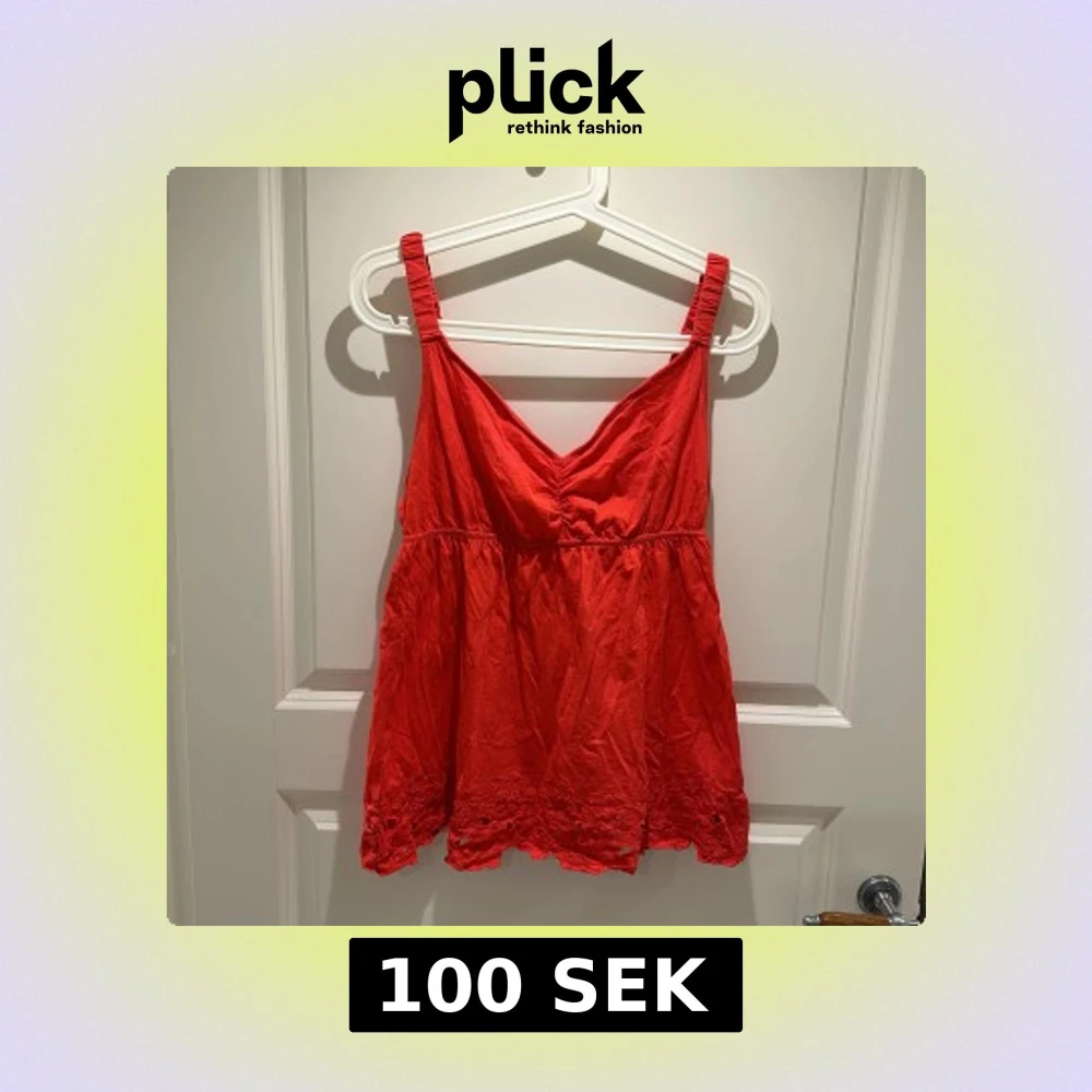 Säljer ett snyggt rött linne med smala axelband och v-ringning. Toppen har en luftig passform och fina broderade detaljer längst ner. Perfekt för varma sommardagar!