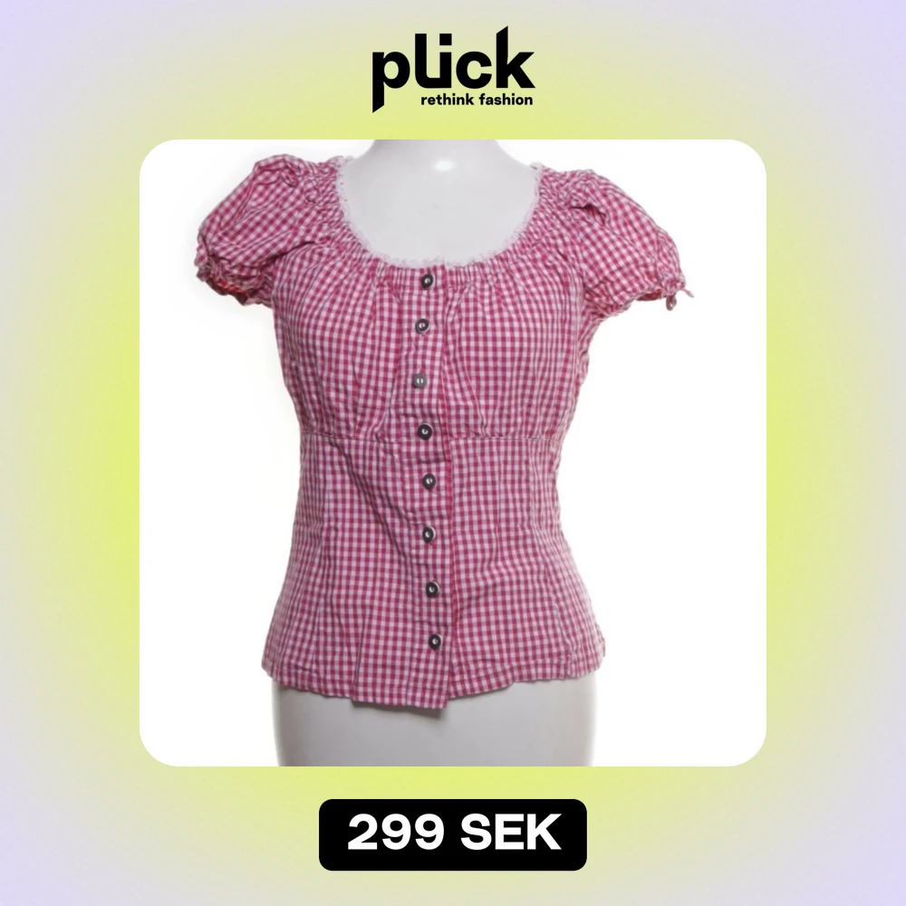 Säljer en söt rutig blus i rosa och vit med puffärmar och knappar framtill. Den har en smockdetalj på ryggen för en bekväm passform. Perfekt för vår och sommar eller finare tillfällen! Storlek S 😍😍