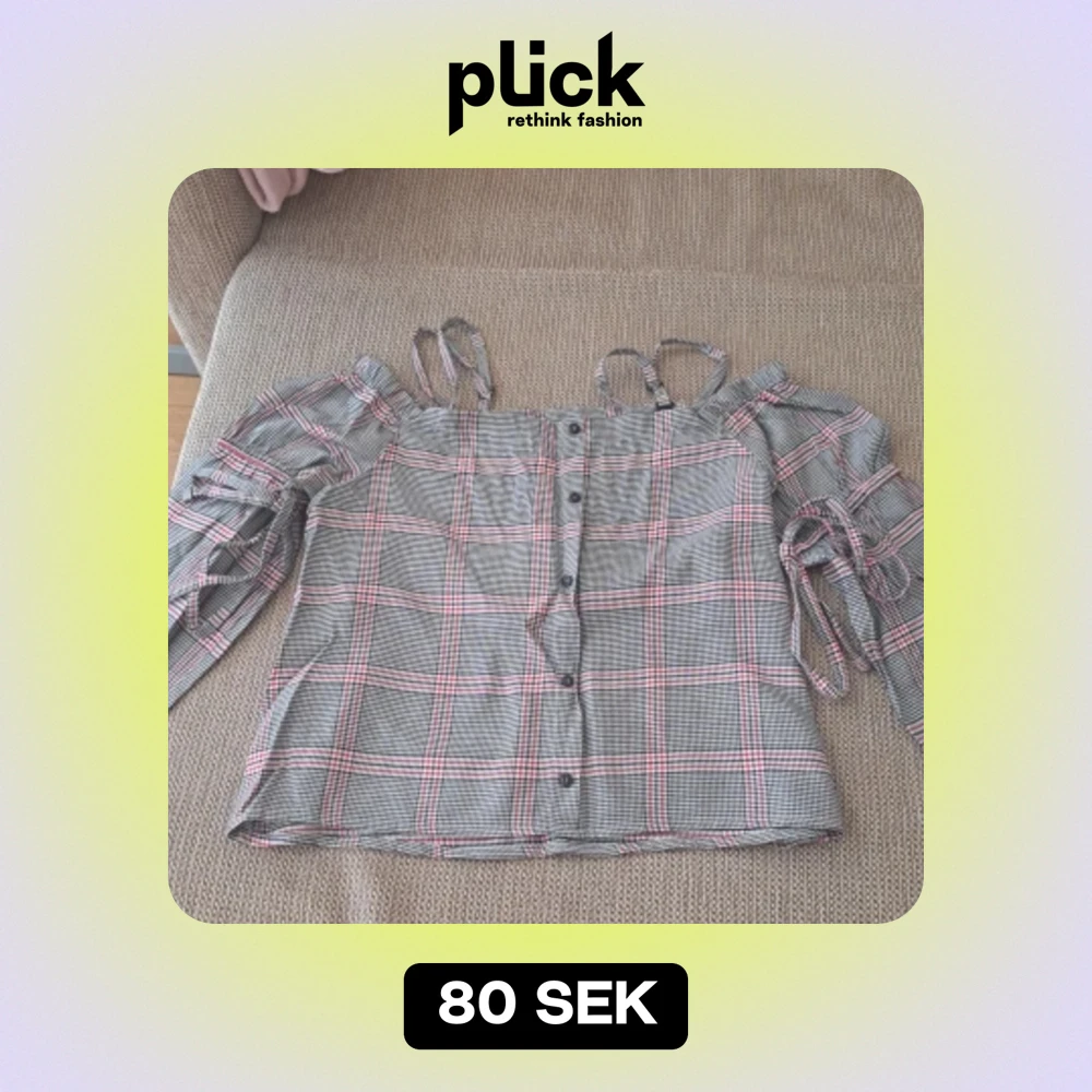 Rutig offshoulder topp med knappar