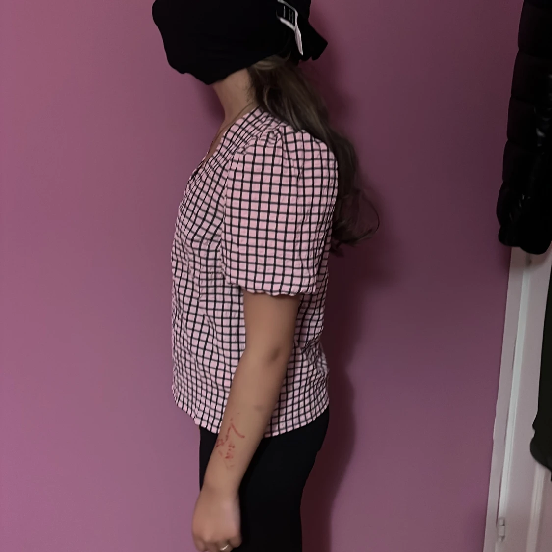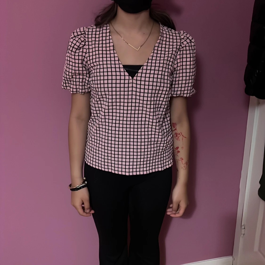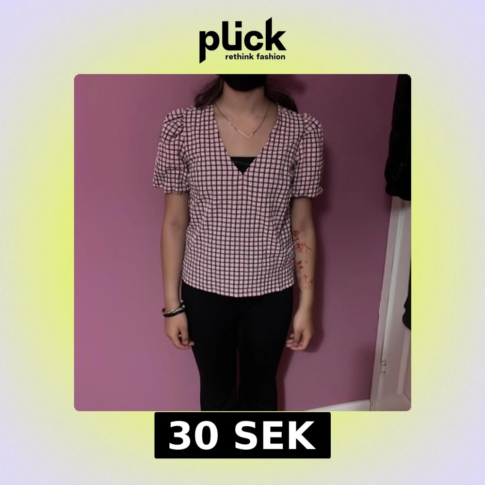 Supersöt rutig blus från Bubbleroom i rosa och svart. Blusen har puffiga korta ärmar, v-ringad hals och en loose passform. Materialet känns lätt och skönt mot huden, perfekt för dig som gillar en chill men ändå trendig look.