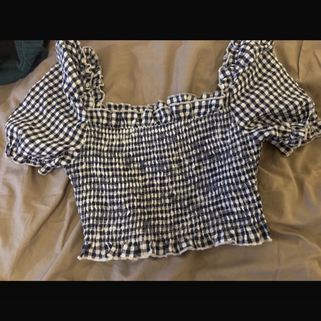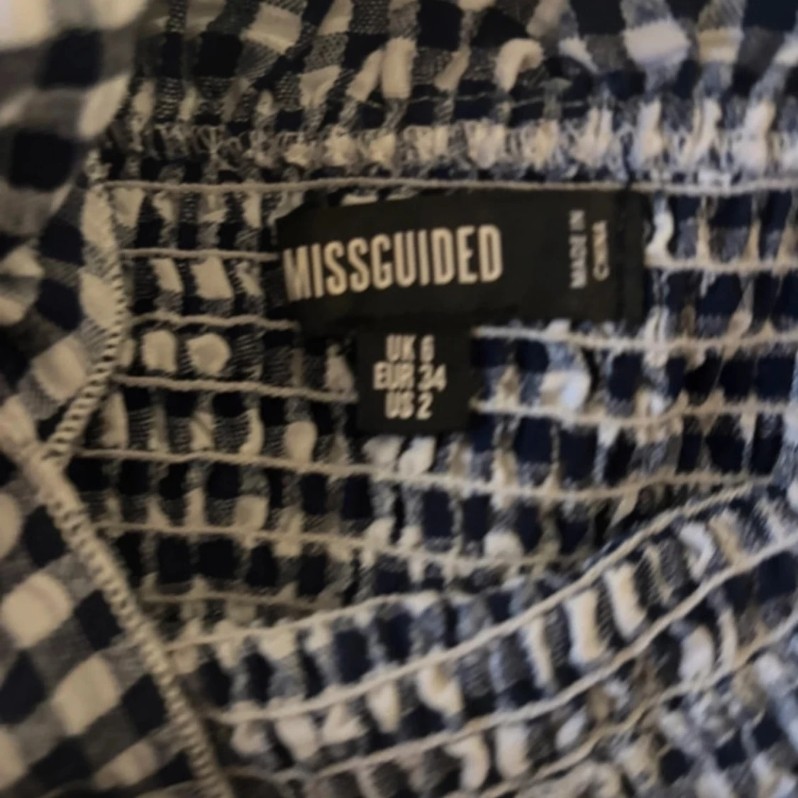 Säljer en söt blå och vit rutig topp från Missguided. Toppen har korta puffärmar och en smockad design som ger en fin passform. Perfekt för en somrig look! 💙