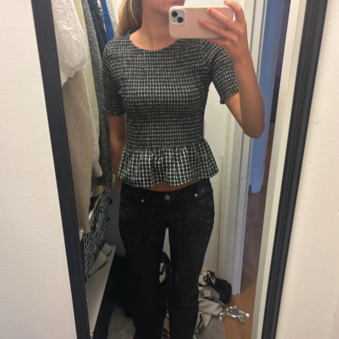 Jättefin rutig topp som passar till festligare tillfällen!!