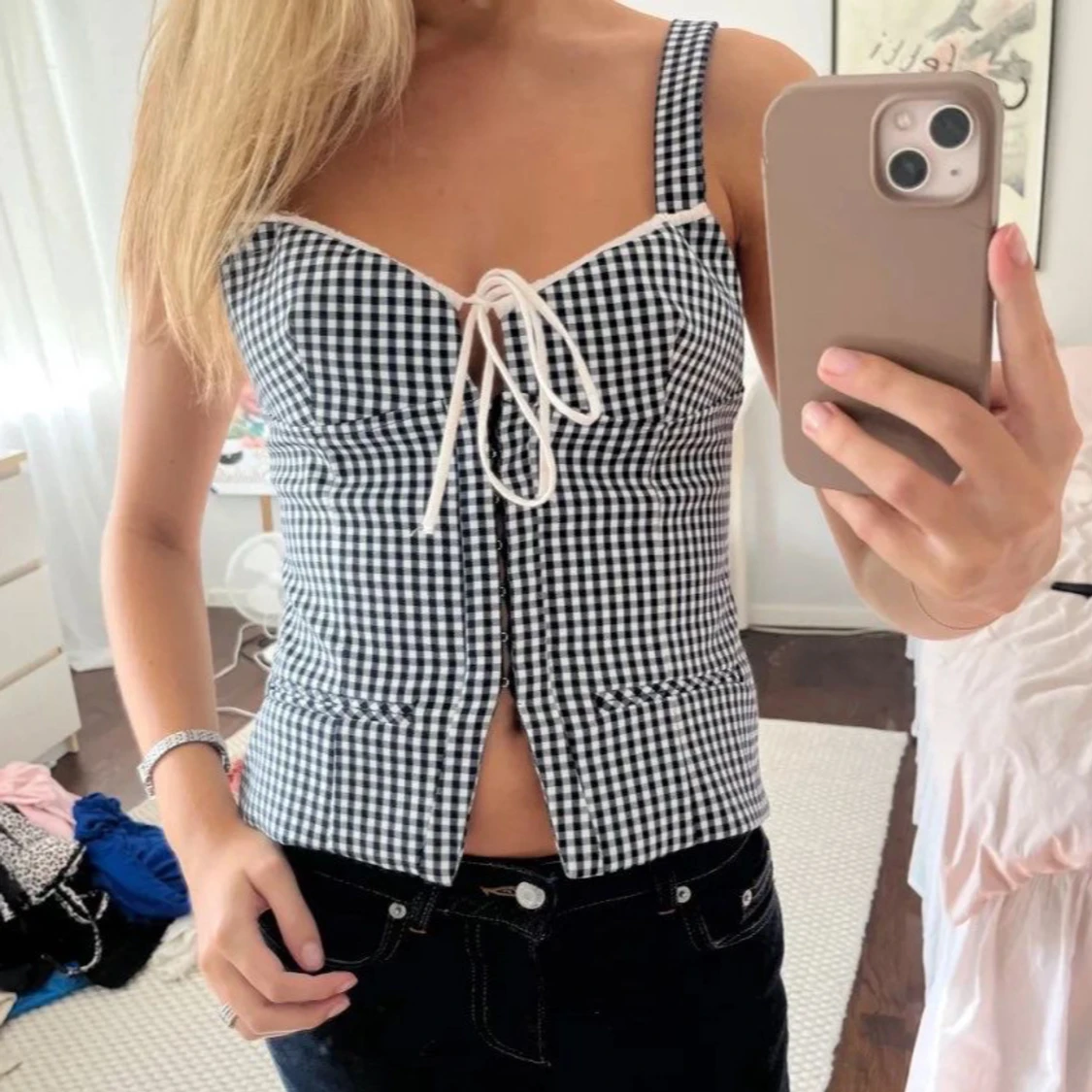 Rutig korsett topp ifrån Zara i storlek xs, helt ny med lappar kvar