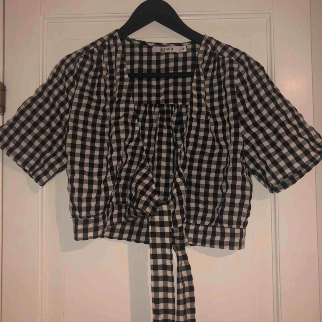 Jöttesöt tröja från NA-KD med ett fint knyte på sidan, köptes på NA-KD outlet i Göteborg för någon månad sen men kommer inte till användning då den är lite liten, så den är i nyskick och använd endast 1 gång!! Frakt betalas av köparen!! :))