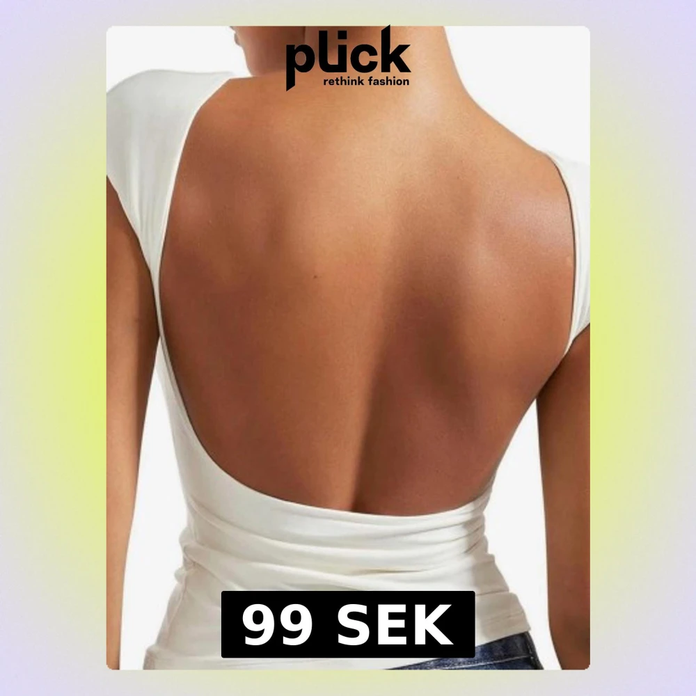 Säljer en stilren vit topp med breda axelband och en djup, öppen rygg. Toppen har en figurnära passform och är tillverkad i ett mjukt, stretchigt material som ger en snygg siluett. Perfekt för dig som vill ha en enkel men ändå statement look. Storlek xs. Oanvänd.