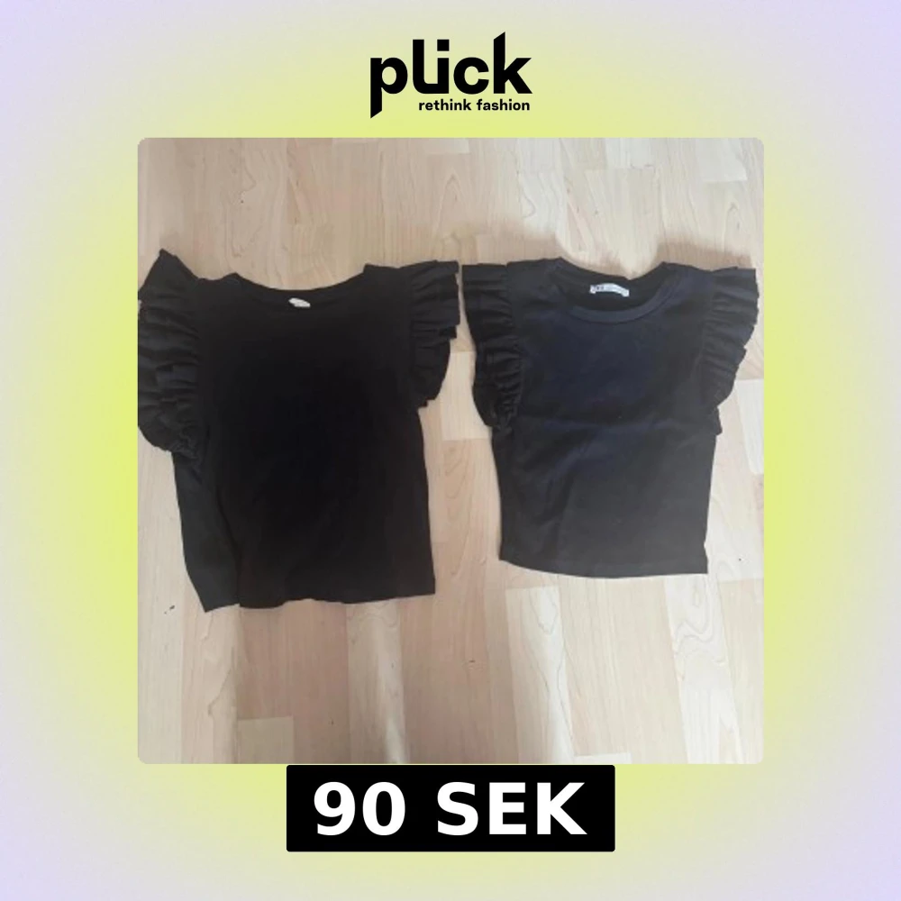 Två svarta toppar med volangärmar, en från Zara i storlek S och en från Only Young i storlek 158/164. Båda har rund halsringning och ribbad struktur. Perfekta för dig som gillar en trendig och söt look med extra volym på axlarna. 2 för 90❤️