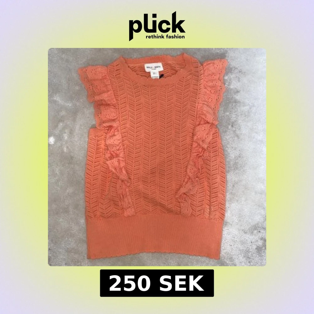 Superfin korallfärgad ärmlös topp från Holly & Whyte by Lindex. Toppen har volangdetaljer på axlarna, hålstickat mönster och bred ribbad nederkant. Har inte använt