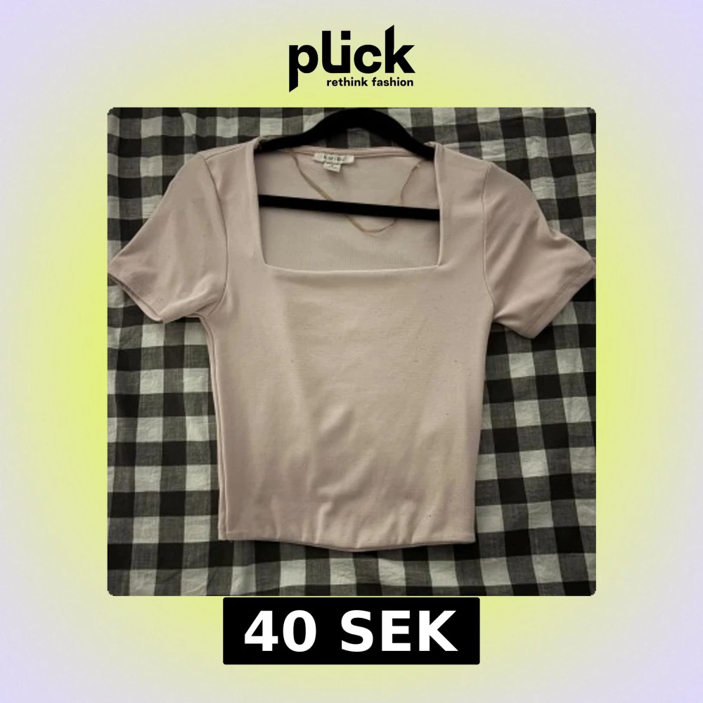 Säljer en ljusbeige topp från Amisu med snygg fyrkantig halsringning och korta ärmar. Modellen är croppad och har en slim passform som sitter snyggt.