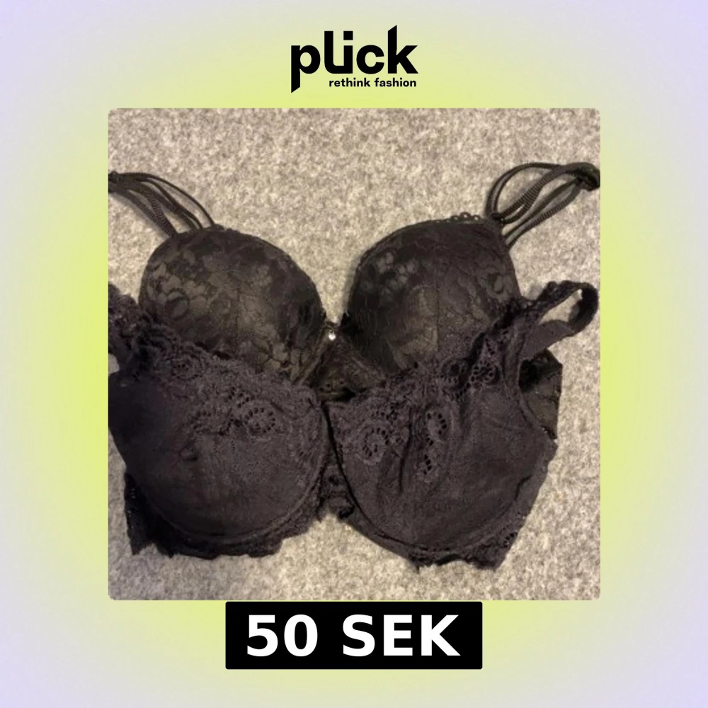 Säljer en elegant svart spets-bh med vackra spetsdetaljer och justerbara axelband. Perfekt för att känna sig extra fin. 💖