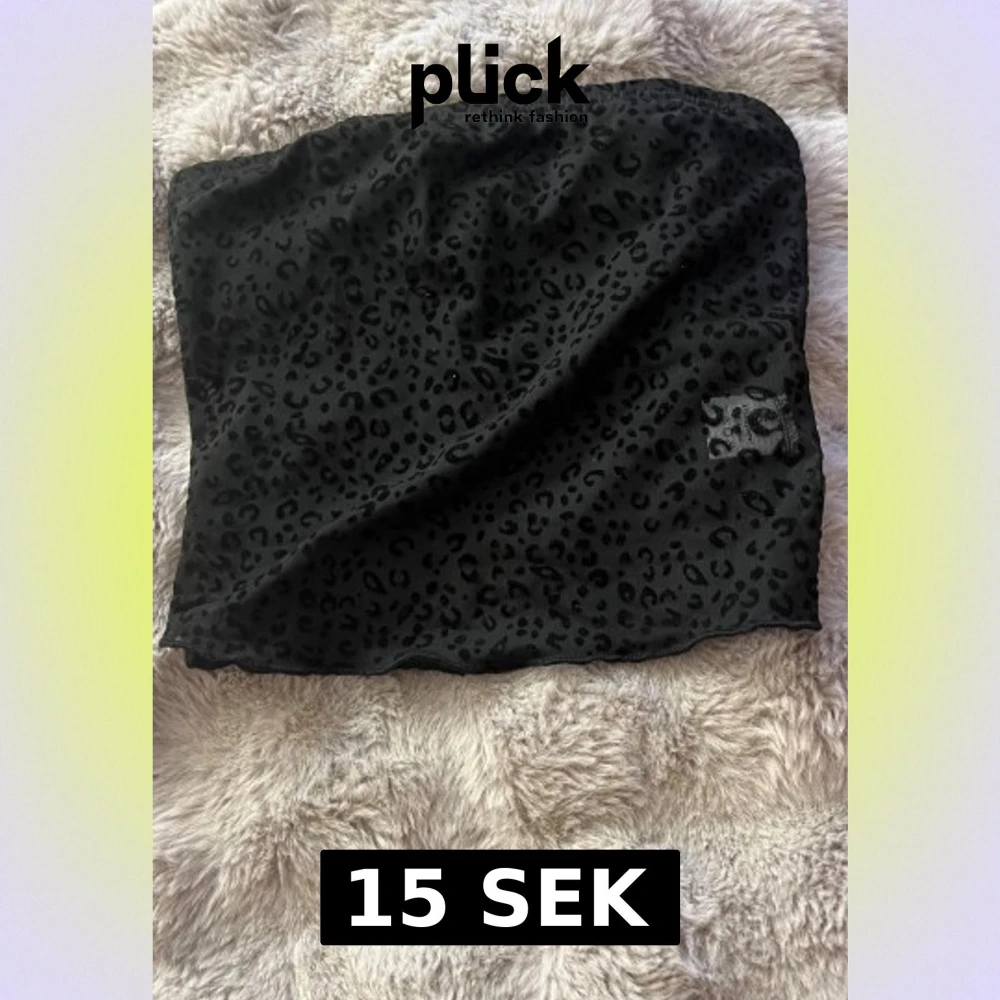 Säljer en svart tubtopp med leopardmönster. Toppen är bandeau-modell och har en stilren, mörk look som passar perfekt till att skapa en edgy outfit. Materialet känns mjukt och följsamt mot huden. Perfekt för dig som gillar djurmönster och vill sticka ut.