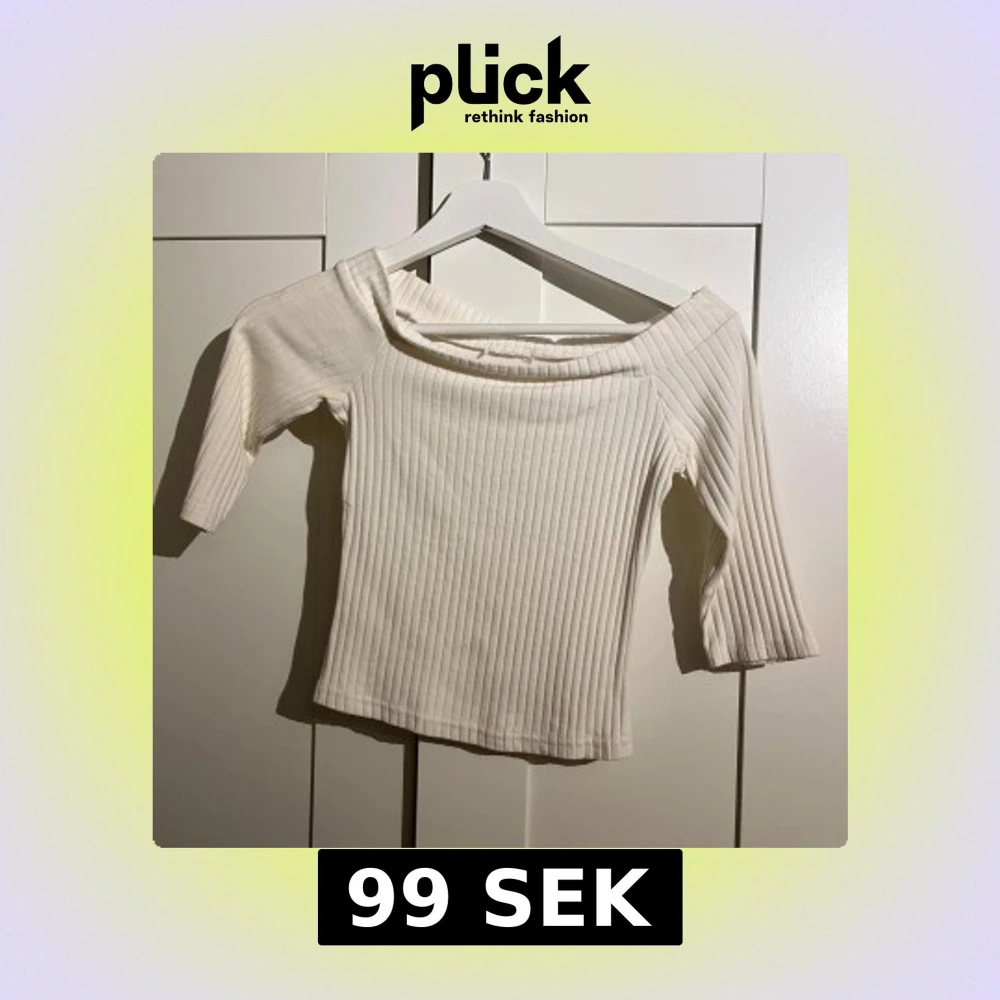 Säljer en stilren ribbad topp i vit färg med offshoulder-design och trekvartsärm. Materialet är mjukt och stretchigt, perfekt för dig som gillar en enkel men snygg look. Passformen är normal och toppen har en clean vibe som funkar till många outfits.