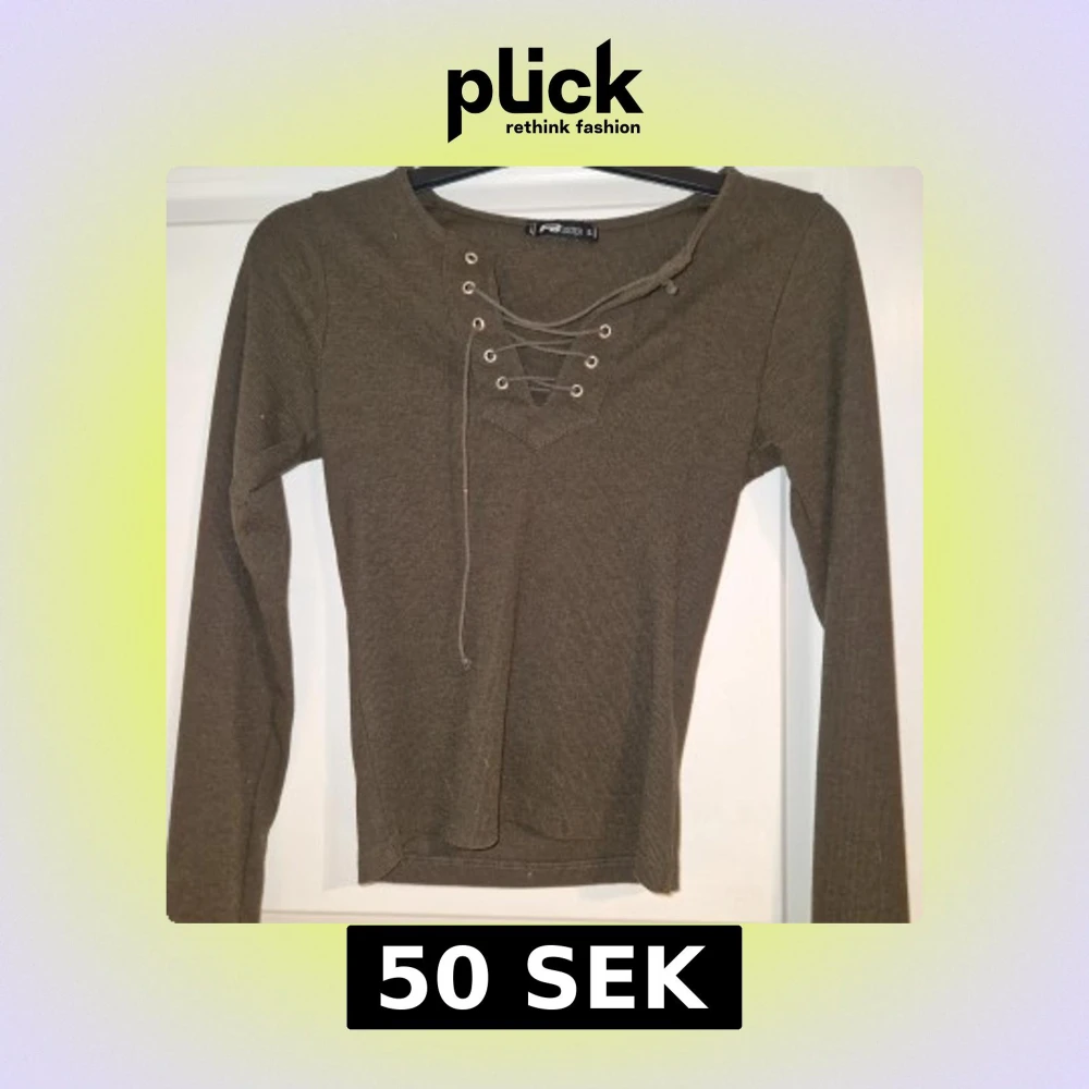 Snygg olivgrön långärmad topp från Sister med ribbad struktur och cool snörning framtill vid halsen. Perfekt för dig som gillar en enkel men ändå trendig look. Toppen har en figurnära passform och är superenkel att styla till jeans eller kjol.